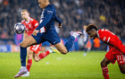 第73分钟,姆巴佩牌跑车启动!他在左路快速启动,队友送出过顶挑传。蛮不讲理的姆巴佩用速度强吃对手,接到皮球,拿到单刀的机会。面对出击的索默,姆巴佩挑射,遗憾的是,这球被神勇的索默用脸给挡了出来。随后,姆巴佩补射,但越位在先。