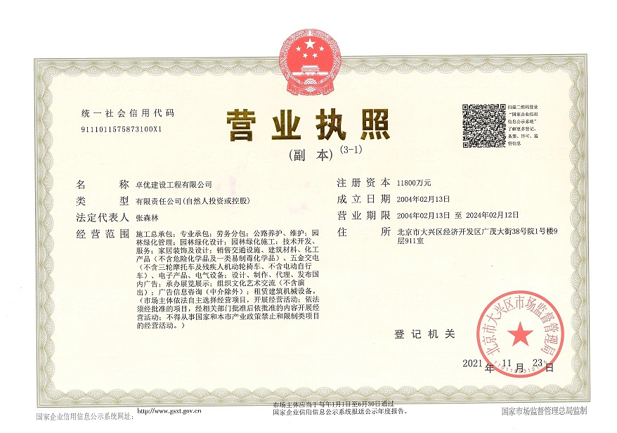 北京卓优建设集团有限公司,注册资金 1.88 亿元,集团资质:
