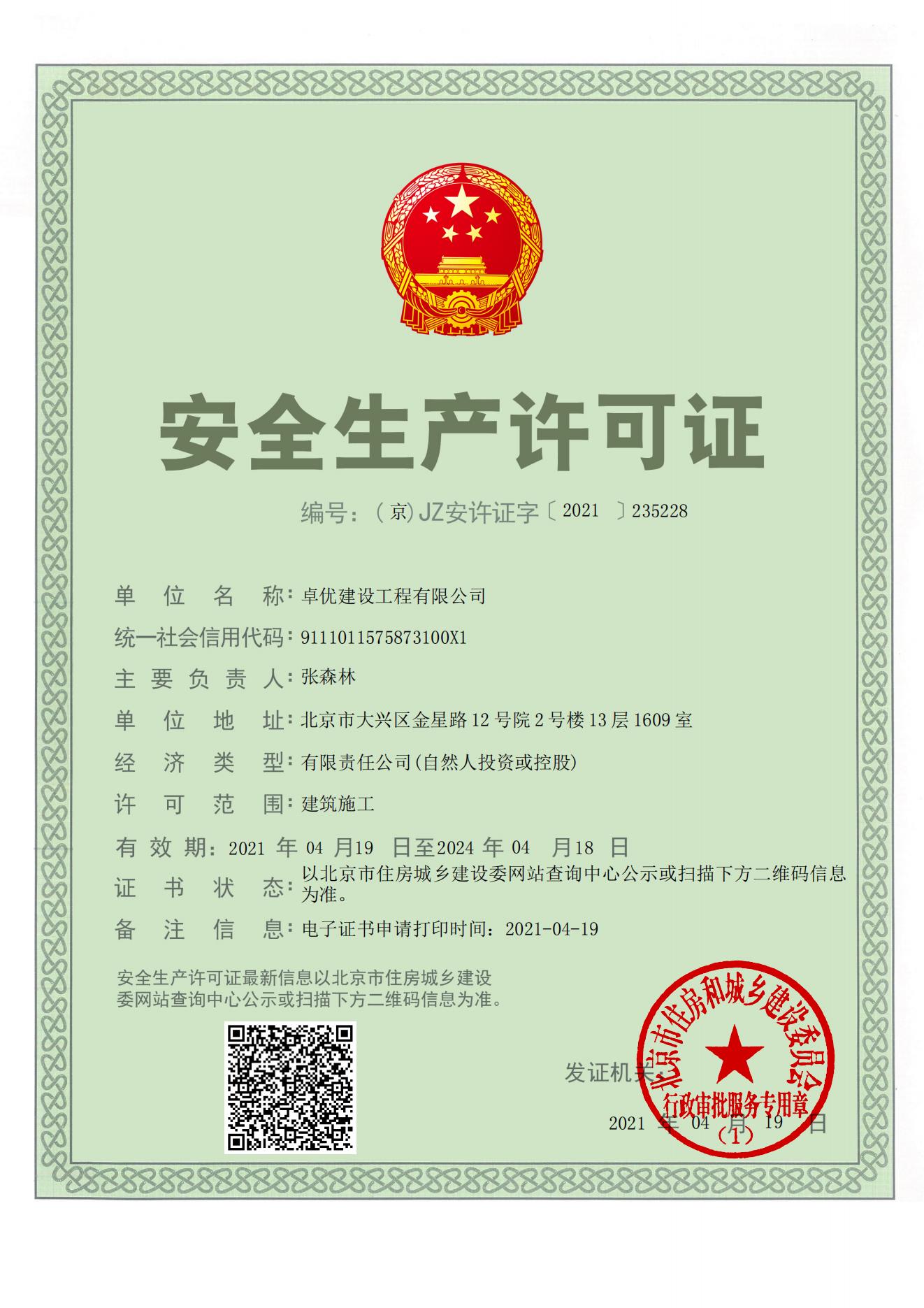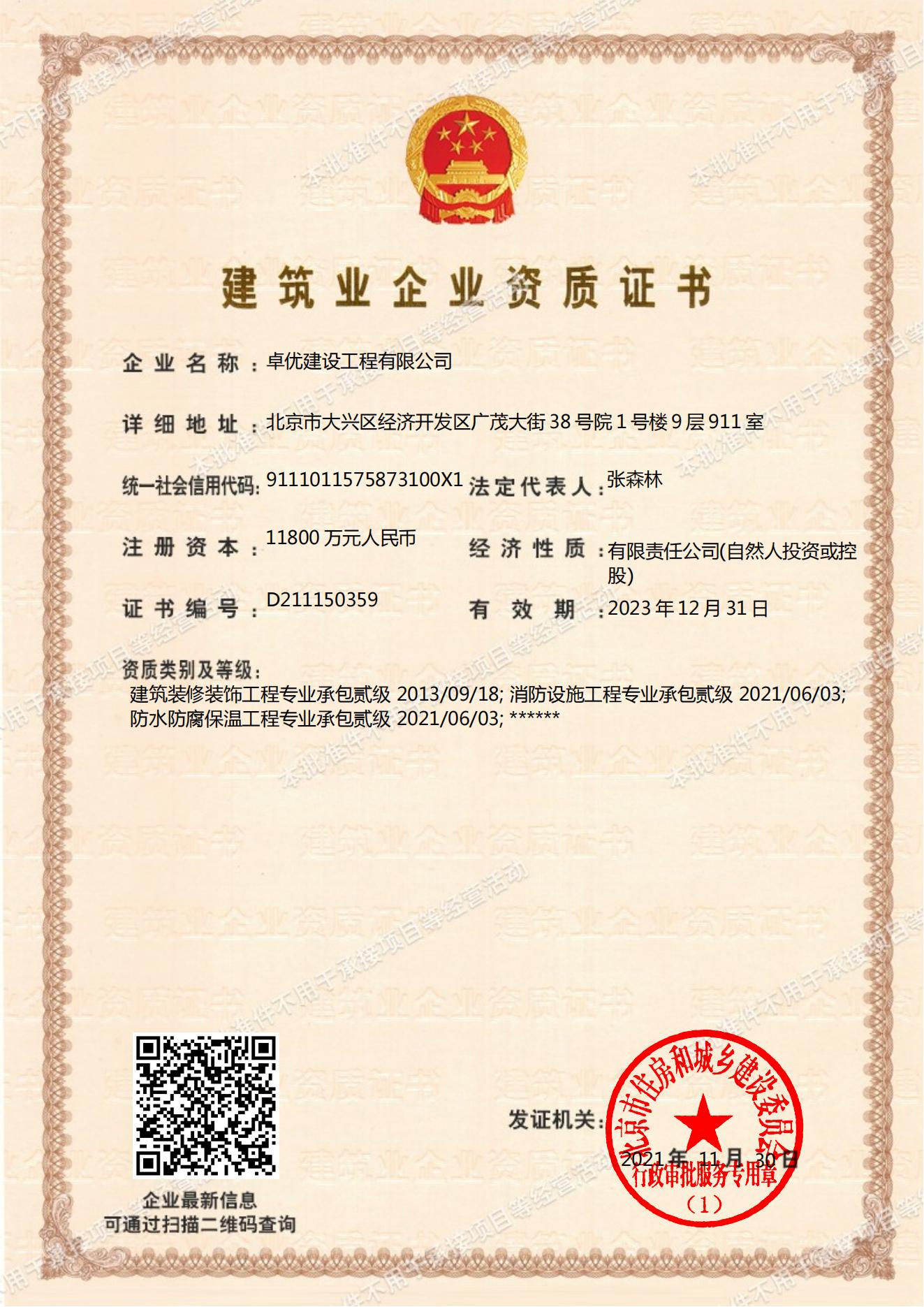 北京卓优建设集团有限公司,注册资金 1.88 亿元,集团资质:
