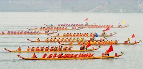 端午节与春节等古老传统节日一样,是一个集祈福消灾、欢庆娱乐和饮食为一体的民俗大节,在传承发展中杂揉了多地多种民俗为一体,节俗内容丰富。端午习俗活动围绕敬龙酬龙、祈福纳祥、压邪攘灾等形式展开,内容丰富多彩,热闹喜庆。扒龙舟是端午节的一项重要活动,是多人集体划桨竞赛是古代龙图腾祭祀的节仪,乃遗俗也。至今在我国南方沿海一带仍十分流行,传出国外后,深受各国人民的喜爱并形成了国际比赛。在古代典籍有关龙舟起源的记载中,最早是出现在东汉。据《事物原始》中记载:“竞渡之事,起于勾践,今龙船是也。”闻一多先生的《端午考》说,距屈子投江千余年前,划龙舟之习俗就已存在于吴越水乡一带,目的是通过祭祀图腾——龙,以祈求避免常见的水旱之灾。