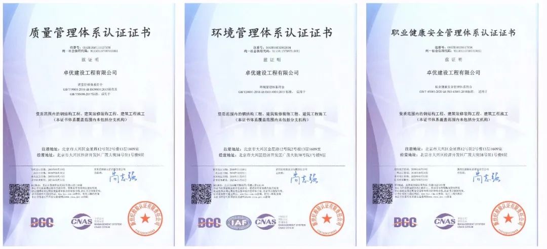 此次认证的成功通过是卓优建设集团乔迁新址后,发展进程上又一新的里程碑,标志着我们迈向了新的时代,公司管理已走向正规化、系统化、成熟化。回顾过去,振奋人心,展望未来,更是斗志昂扬。