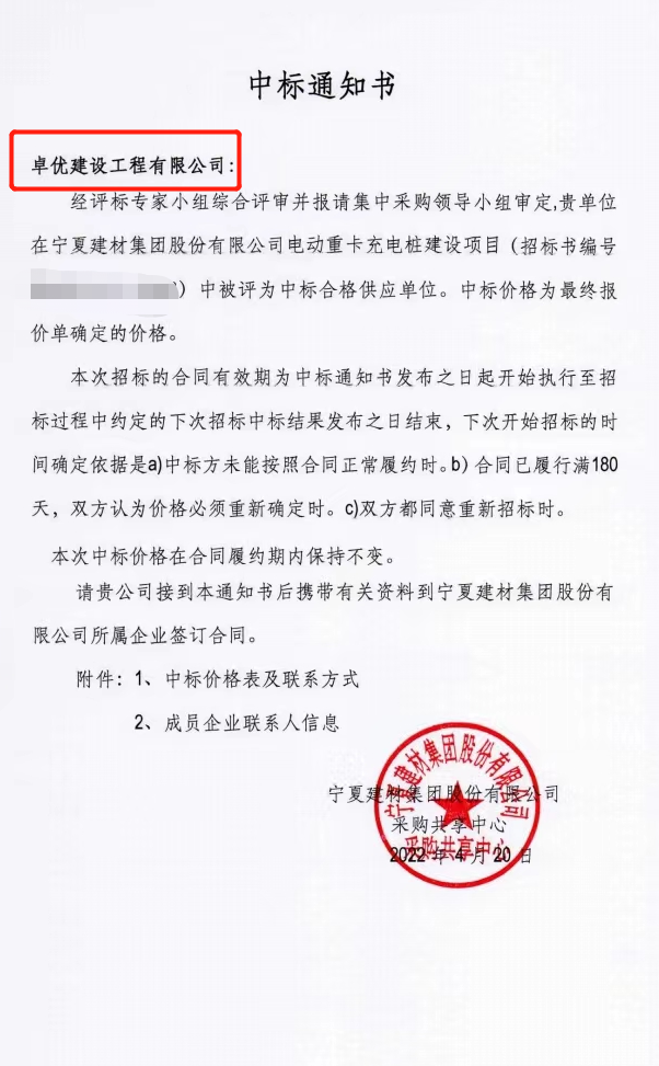 中标该项目,首先感谢宁夏建材对卓优建设集团有限公司的信任与支持,为我们提供一个充分发挥的机会,公司始终坚持以首善标准和工匠精神,全力以赴将工程打造成样板工程、精品工程、平安工程,优质高效的服务于业主,为城市发展、民生保障贡献企业力量。